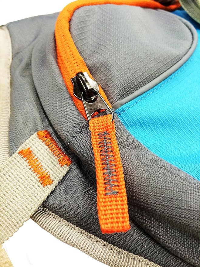 - FEATURES: This great dog backpack is durable, breathable, and water repellent. Because the underside of the backpack is padded and lined with a breathable mesh, your dog won't get overheated. The straps are made with elasticity to adapt to your dogs motions, so when the dog moves, the straps move. The smart straps also have a reflective trim for safety on nighttime and early morning walks.