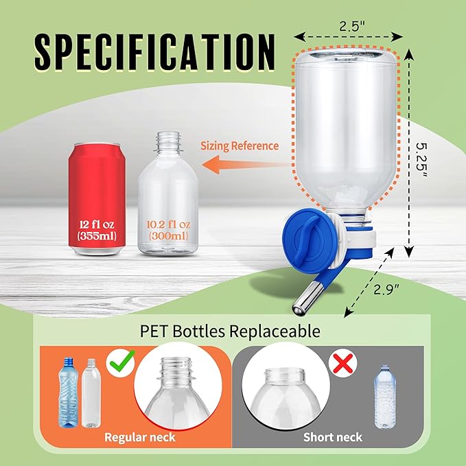 - πΎ Mini-sized Nozzle (10mm) is perfect for small animals, especially for Hamster/ Hedgehog/ Sugar Glider/ Rat/ Mice. Made of BPA Free Material/ 10.2 oz Capacity.
