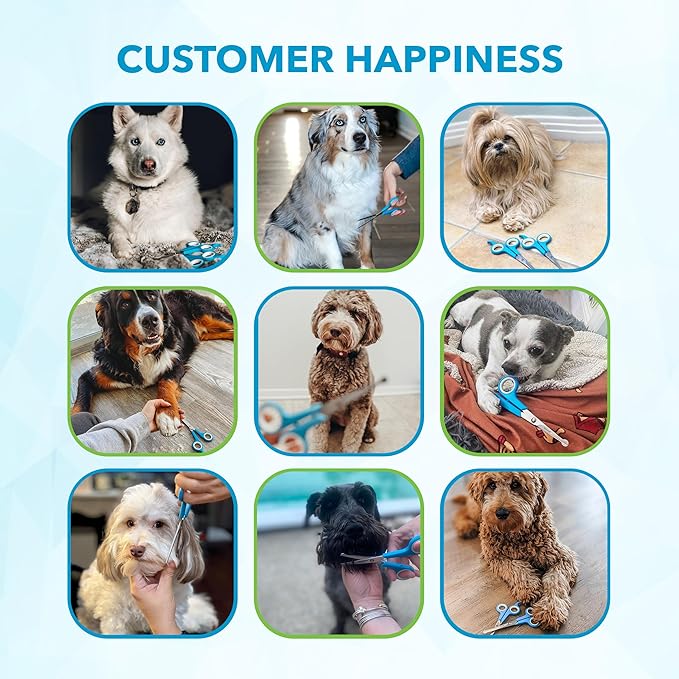 - Updated Newly Improved Screw - Both dog shears feature an upgraded newly-designed, super strong screw to keep the blades tightly together. We've listened to what customers like, and implemented a strong NON-REMOVABLE screw to ensure sturdiness for a long-lasting lifespan. Unlike other competing brands, the Boshel scissors for puppy with the upgraded screw are guaranteed to last for many many years of happy pet grooming.