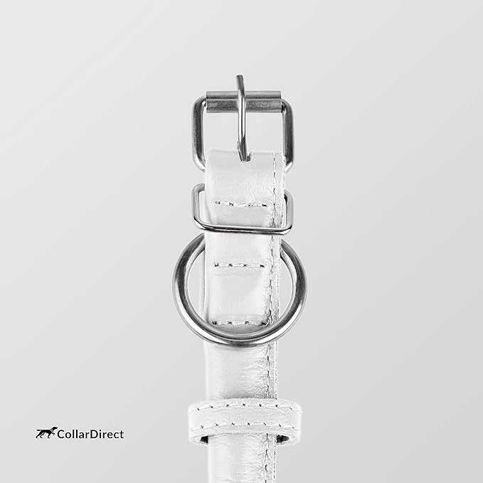 CollarDirect Rolled Leather Dog Collar, Soft Padded Round Puppy Collar, Handmade Genuine Leather Collar Dog Small Large Cat Collars 13 Colors (18-22 Inch, White Textured)