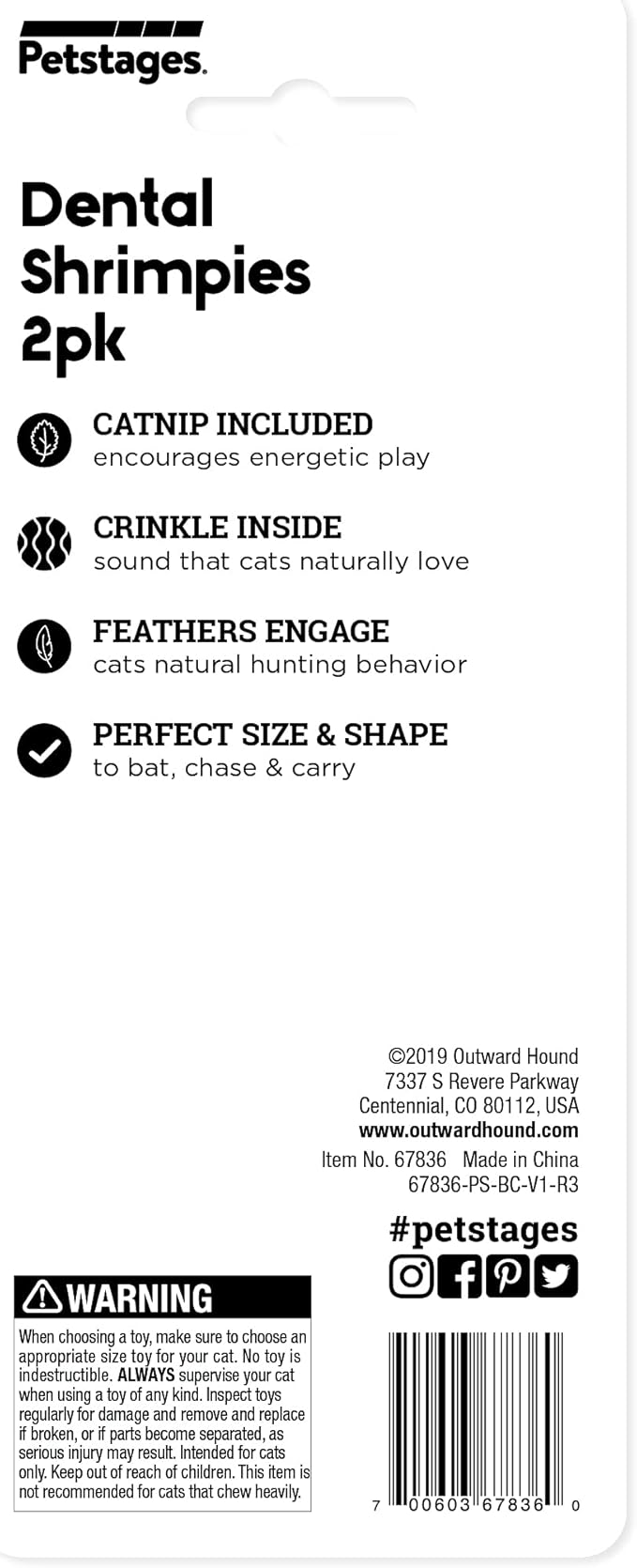 Catstages Catstages Dental Shrimpies Cat Toys, 2-pack – Interactive Catnip Dental Chew Toy to Help Clean Teeth, Fun for Play and Chewing, Multicolored