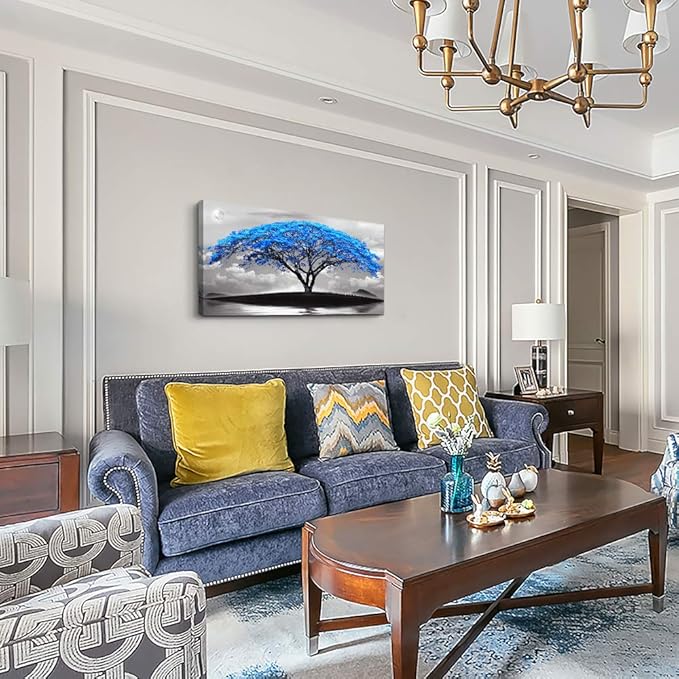 canvas wall art for living room bathroom Wall Decor Black and white landscape Blue tree moon painting to Hang Home Decorations for office bedroom kitchen Works canvas Prints pictures 20" x 40"inch