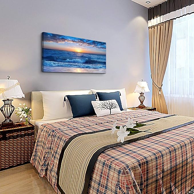 canvas wall art for living room Blue Ocean Sea sun landscape painting bathroom Wall Decor Ready to Hang for Home Decorations office family bedroom kitchen Works canvas Prints pictures 24" x 48"inch