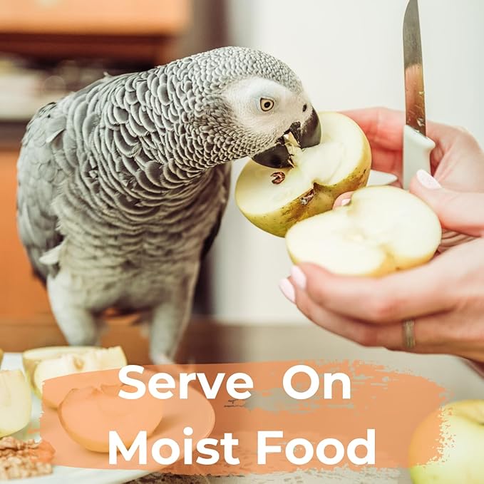 - EAST TO USE: Just add to moist food! Sprinkle FeatherUp! on veggies, chop, or cooked diets. Start off with a pinch and work your way up to the full dose. Feed 2X day during molting or active feather regrowth and one time daily to support overall health.