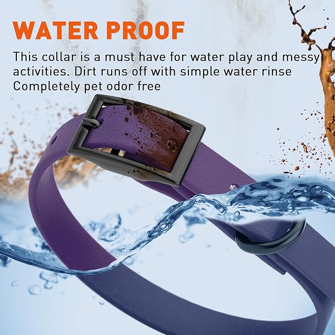 Dogline Biothane Waterproof Dog Collar Strong Coated Nylon Webbing with Black Hardware Odor- Proof for Easy Care Easy to Clean High Performance Fits Small Medium or Large Dogs, Violet Purple
