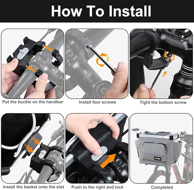 - Lightweight and Durable: Made of waterproof oxford cloth and rustproof aluminum frame, the front bike basket is light-weight and easily cleaned by wiping with towel. The aluminum handles have soft and tearproof sponge pads, which protect your hands while lifting heavy objects.