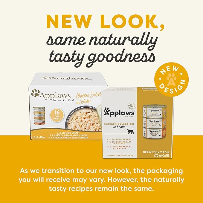 Applaws Natural Wet Canned Cat Food, Made with Limited and Natural Ingredients, Protein with No Artificial Additives, Chicken Selection Variety Pack in Broth (16 x 2.47oz Cans)