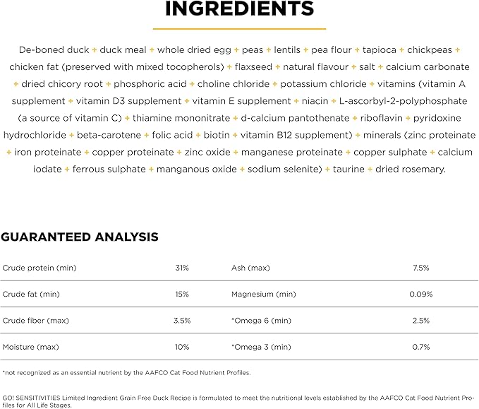 Go! Solutions Sensitivities Limited Ingredient, Grain-Free Dry Cat Food, Duck Recipe for Sensitive Stomach, 8 lb Bag