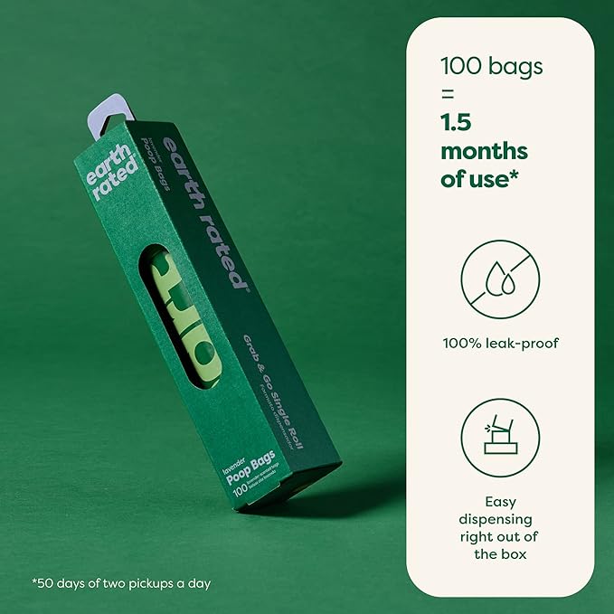 - UNROLL SAVINGS: Value-packed roll of 100 Earth Rated dog poop bags. Convenient tissue-style dispensing right out of the box. Perfectly perforated to come off roll easily without ripping.
