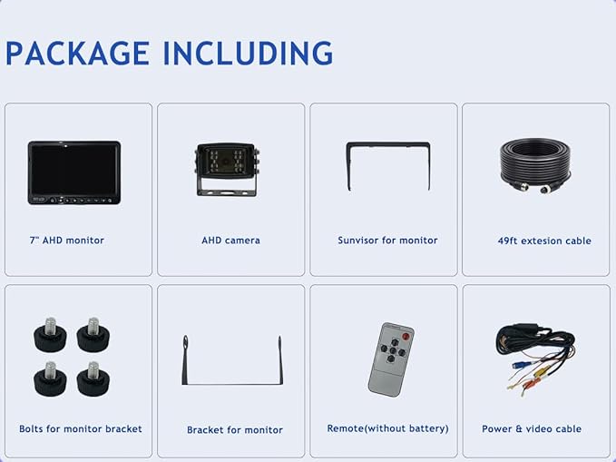 - [SINGLE VIEW MONITOR]A 7β LCD AHD 1080P color monitor (NOT SPLIT SCREENοΌ so the full/split/quad view buttons don't work) with U-type metal bracket. This monitor is not waterproof. It is compatible with most of the vehicles with a free power input range DC10-36V and supports with max 3 cameras. TVS device is built in to protect the monitor from being damaged by the transient high power of vehicles. And this monitor only supplies camera which is in use with DC12V, it saves energy.