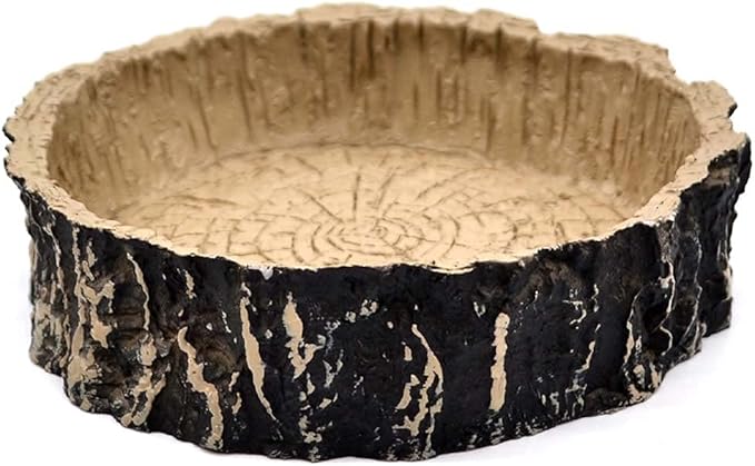 - Boa Water Dish: natural wood look made from quality resin, will not absorb bacteria, stain, or leak, boa constrictor water bowl measures 4 x 4 x 1 in