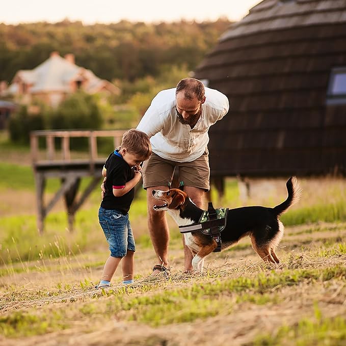 Dogline Dog Harness, Reflective No-Pull Adjustable Vest with Handle for Walking, Training, Breathable, No - Choke Harness for Small, Medium or Large Dogs Room for Patches Girth 15 to 18 in Green Camo