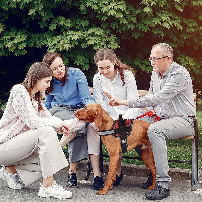 - ADJUST THE SIZE TO YOUR PETβS NEEDS Our Service Dog harness vest is fully adjustable so as to ensure a comfy yet snug fit. Forget about harnesses coming loose. Forget about seams and stitching falling apart. The quick release belly buckle facilitates use to the fullest and the top handle is great for added control and assistance.