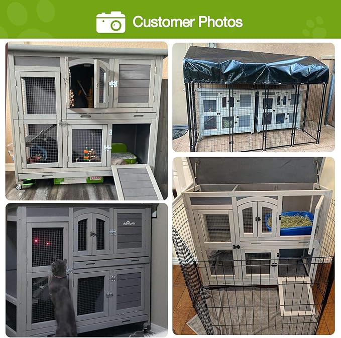 - Leakproof Tray: Outdoor rabbit cage with 2 DEEPER LEAK PROOF TRAYS make clean easy. Quality plastic trays will never leak or rust