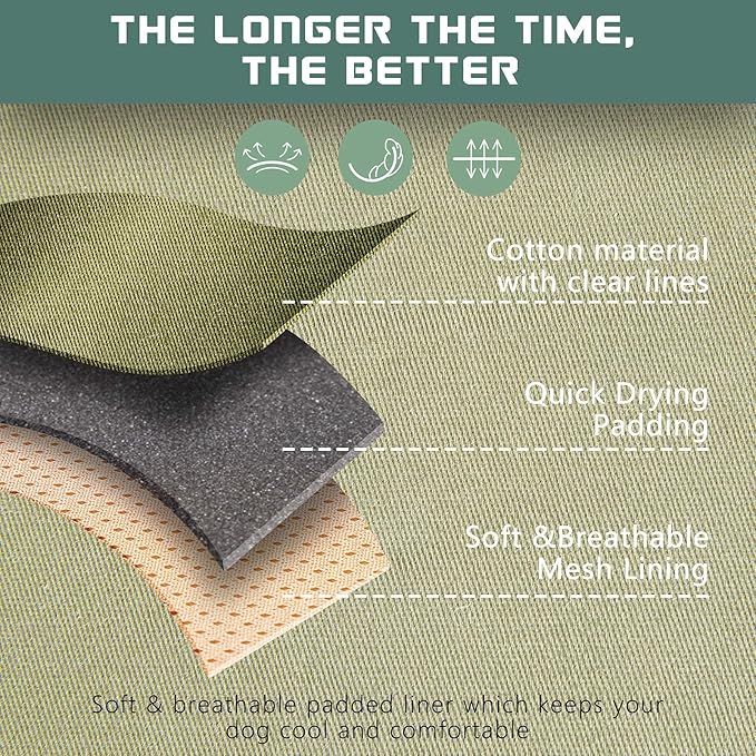 - ๐พDUARABLE & BREATHABLE MATERIAL: All Day Comfort.๐พ The heavy-duty vest made of soft cotton fabric with clear texture for the beautiful appearence. Extra durability and wear-ability, suitable for all field use. The soft padding can protect your dog's skin, while the breathable air mesh keeps your dog ventilated and comfortable. We will protect the comfort and health of the dog together with you.