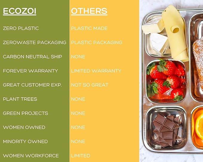 - ECO FRIENDLY: These 18/8 stainless steel dinner ware set is an earth friendly alternative to plastic plates. These are PVC free, Phthalate free, Leaching free, plastic free, and low carbon footprint.
