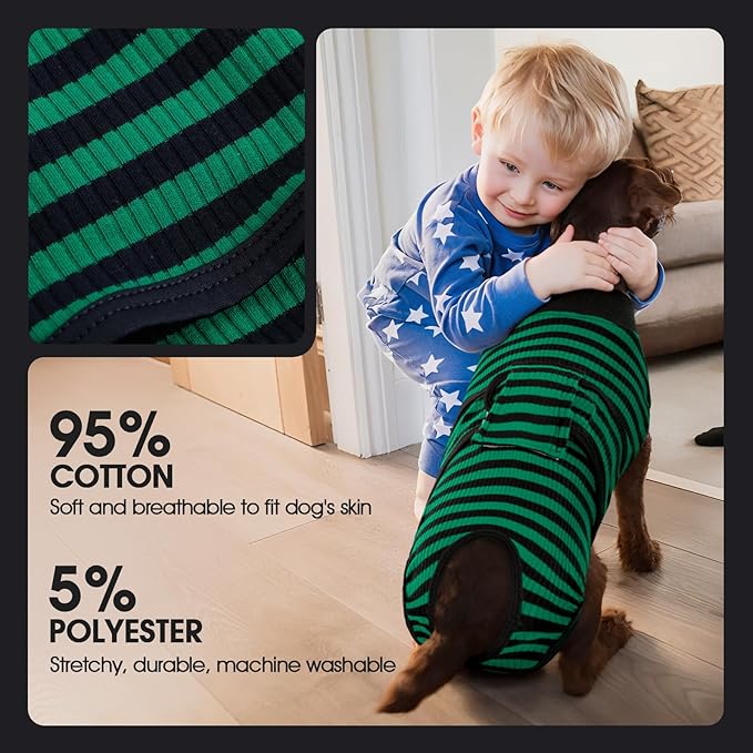 FUAMEY Recovery Suit for Dogs After Surgery,Soft Breathable Dog Bodysuit E-Collar & Cone Alternative Surgical Suit,Male Female Dog Neuter Spay Suits Anti Licking Wounds Onesie Green Black Stripes L