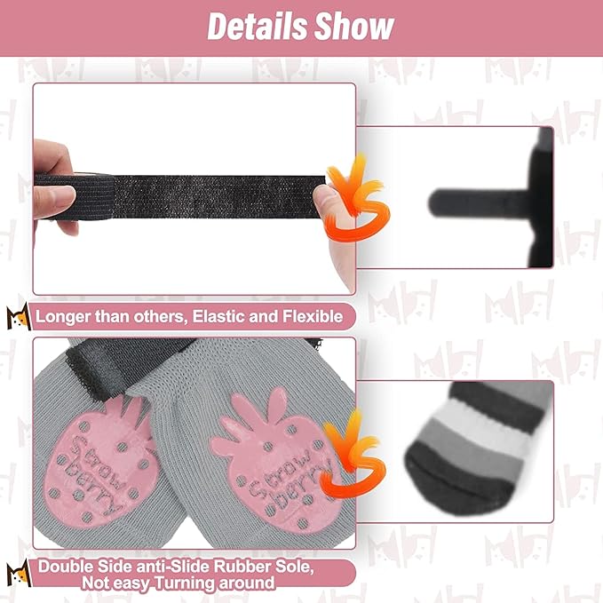 - Non-Skid: For hardwood floor, if your baby has problems who was splaying and keeps slipping on your wooden floors with back legs, we suggest you would buy these the soles which have anti-slip adhesive, which can provide extra traction. Besides, wearing a non skid sock prevents dogs from licking and irritating the wound further aid in healing foot wounds.