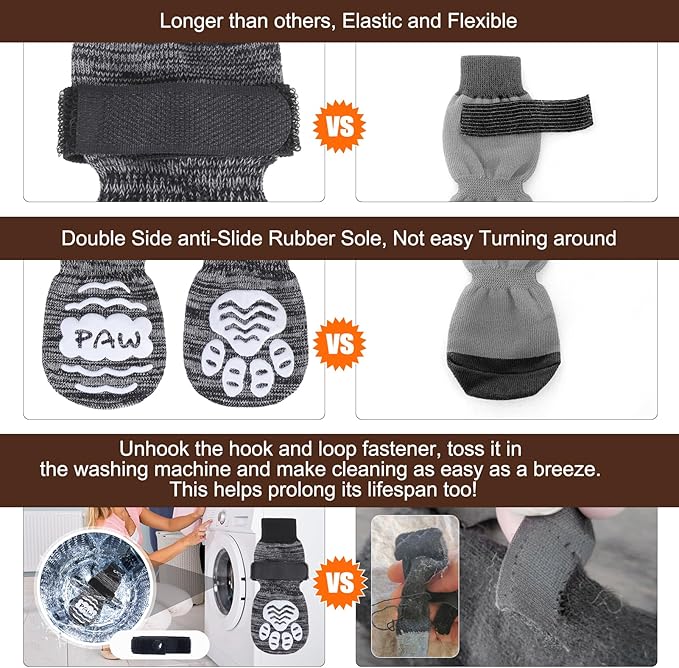 - Anti-slip: With a three-sided non-slip rubber sole, your pet's paws will have a good grip on the floor. For hardwood floors, if your baby's paws have a problem slipping on wood floors, we recommend you buy these socks with a anti-slip adhesive. Use non-slip socks to help heal foot wounds and prevent the dog from licking and further irritating the wound. β οΈPlease note that we have a design patent to protective this exclusive design!