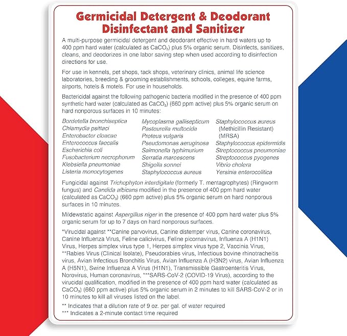 - Cost-effective and easy to use – Save time and money with a powerful cleaner, disinfectant that leaves behind a wintergreen scent! Simply dilute, apply, and leave the surface wet for 10 minutes to disinfect. No rinsing required, making it the perfect solution for daily kennel cleaning.