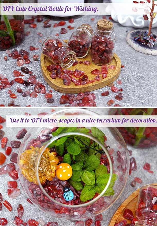 Carnelian Aquarium Gravel Rocks Natural Tumbled Healing Crystal Chips Bulk Gemstones Tumbled Crushed Stones for Fountain Vase Filler Planters Decorative Fish Tank Potted Reiki Energy Balancing 0.44lb