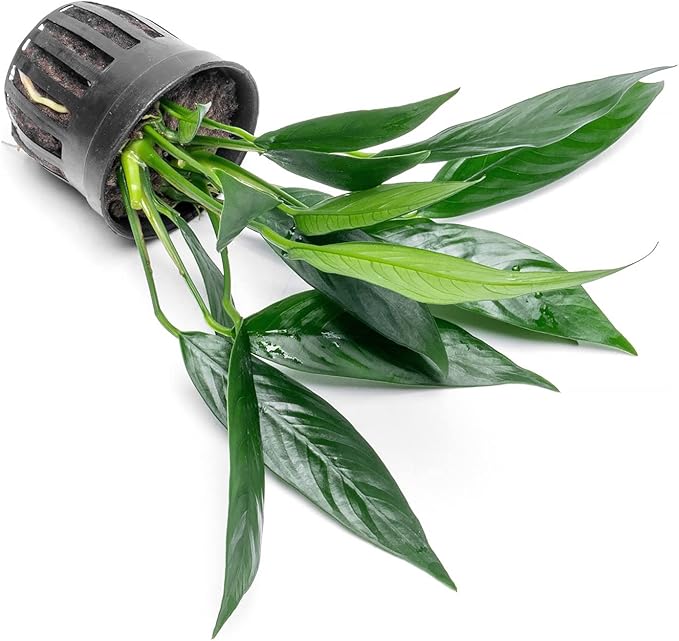 Anubias Live Aquarium Plants - Potted Freshwater Plant for Fish Tanks, Terrariums - Beginner Friendly Low Light (Glabra, 1 Pot)