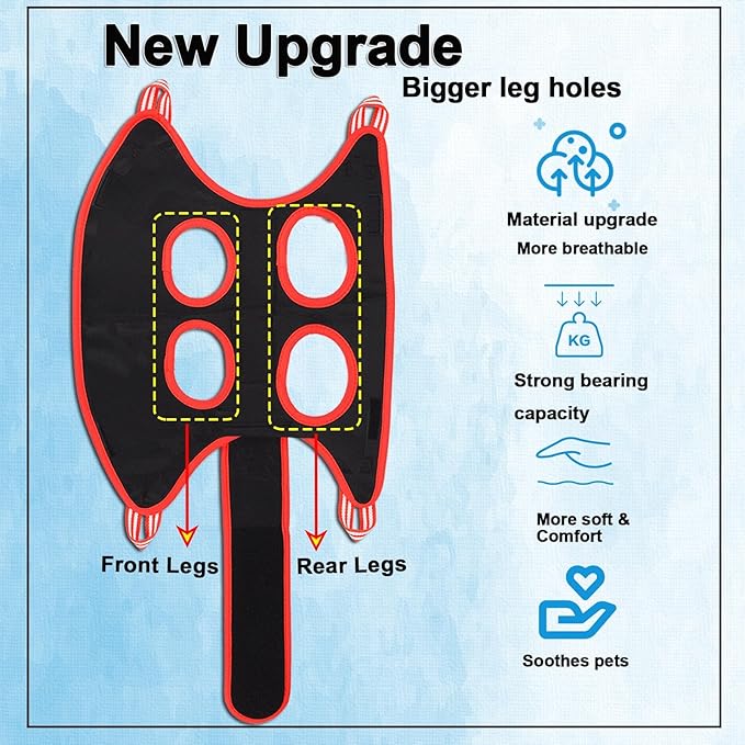 - 【Size Tip】Size XS is suitable for pets with about 6.5 inches between the front and rear legs,In order to make your pet fit perfectly with the grooming hammock, please measure the distance between your pet's legs before purchasing, and the maximum load weight is 25 lbs