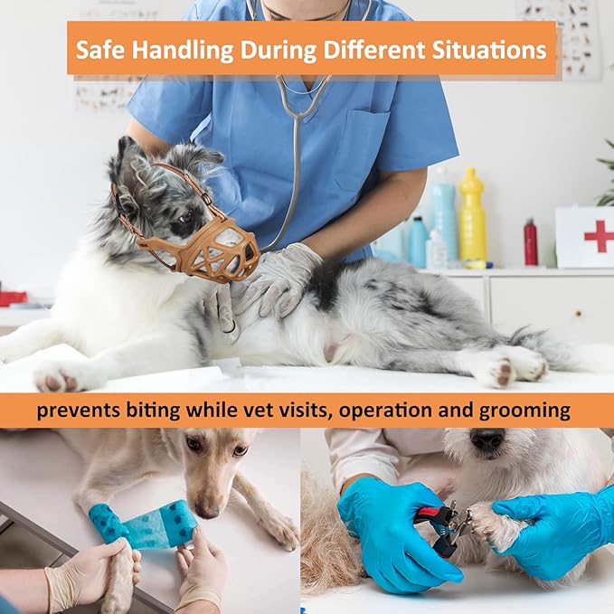 - The Only Muzzle You Need: Say goodbye to your old muzzle. The BARKLESS practical muzzle has features you need to prevent your dog from nipping, destroying, fighting and digging and eating everything while the basket-style design gives all-around mouth protection allowing your pet unrestricted drinking and panting. This muzzle for dogs make it the ideal choice for reactive dogsβ daily walks, occasional use, dog park socialization, grooming, vet visits, training, traveling, and walking