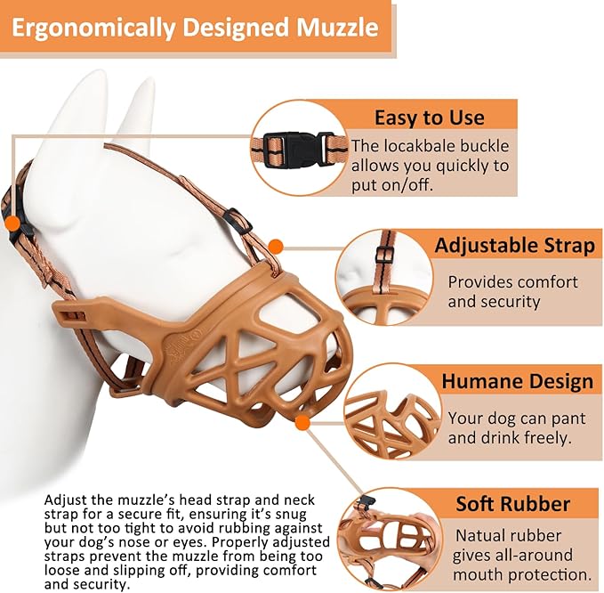 - Prevent Muzzle Slippage: An incorrect size, improper fit, or lack of muzzle training can cause the dog to remove the cage muzzle. Adjust the straps to ensure a snug fitβsecure enough to keep the basket muzzle for dogs in place without causing discomfort. Check the head strap to prevent slippage. Refer to the included instructions to help your dog adjust to the dog muzzles to prevent biting