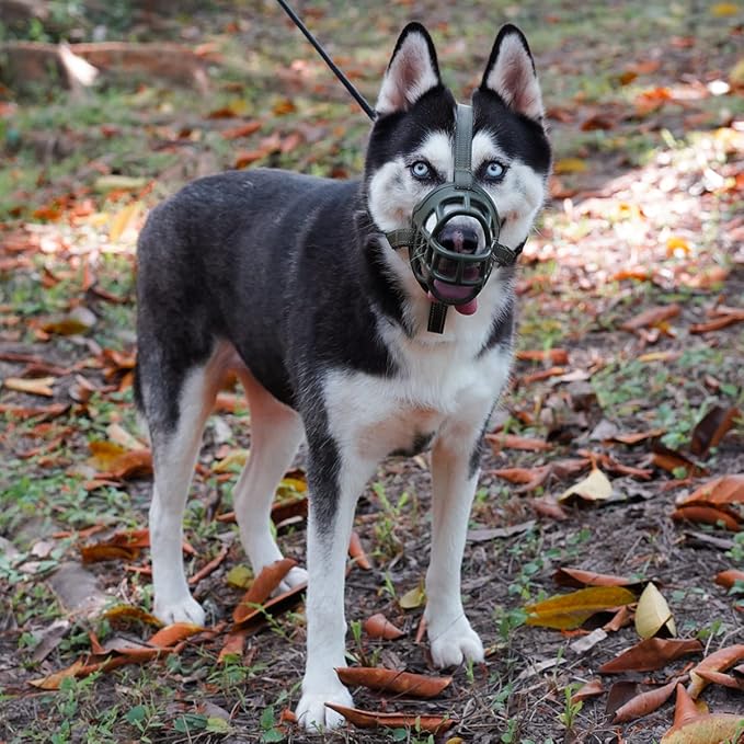 BARKLESS Dog Muzzle, Soft Basket Silicone Muzzle for Dogs to Prevent Biting and Chewing, Breathable Cage Mouth Cover for Training, Allows Drinking and Panting, Used with Collar