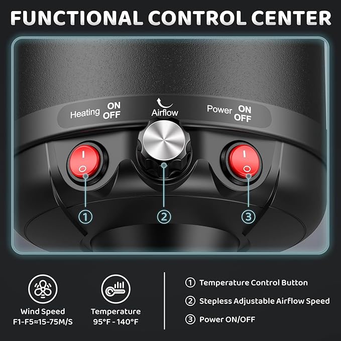 - Adjustable Speed & Temperature: Strong and stable motor equips this dog blow dryer with several speed and temperature levels. Maximum Wind Speed: 72m/s; Temperature Range: 95β-135β. The dryer will stop working immediately if the temperature is too high because it has a built-in temperature control protection system.