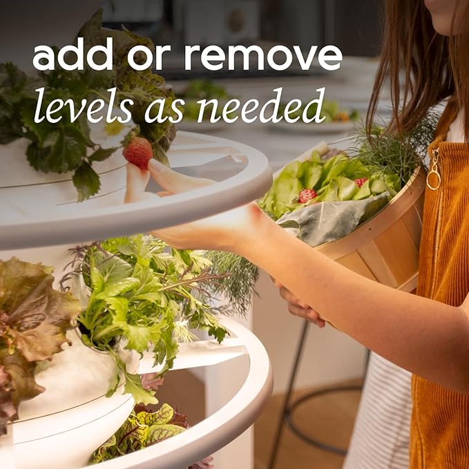 - WHAT'S IN THE BOX: Your new hydroponic system kit includes the Farmstand tower, QR code on your Farmstand packing slip to redeem seedlings, 6 Glow Rings, water pump, power cord, timer, plant food for 130+ plants, pH testing kit, pH Down for water health, stir stick, scoops and a cute sticker. Please note: Your order will ship in THREE boxes that may arrive separately. Box 1 contains the Glow Rings. Box 2 contains additional growing levels. Box 3 contains everything else.