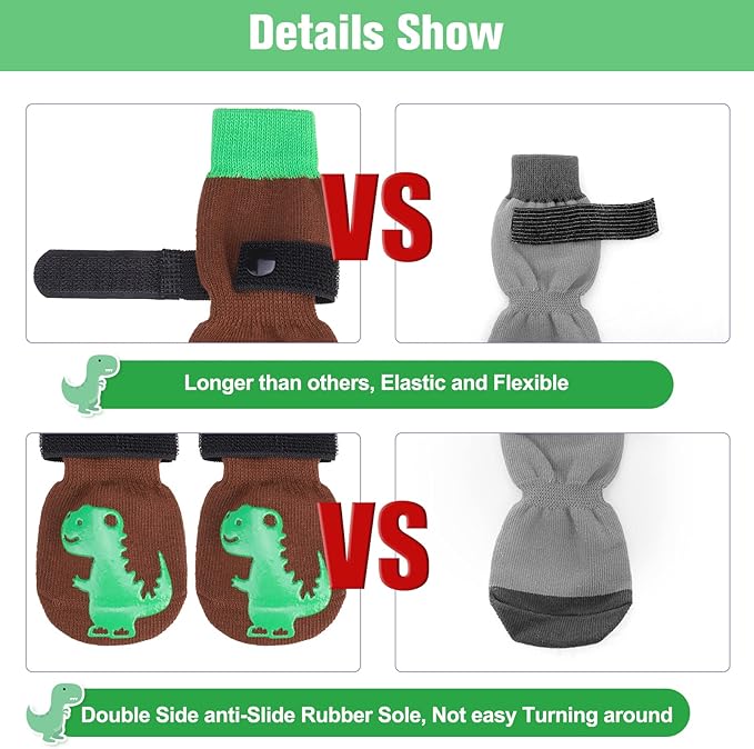 - Non-Skid: For hardwood floor, if your baby has problems who was splaying and keeps slipping on your wooden floors with back legs, we suggest you would buy these the soles which have anti-slip adhesive, which can provide extra traction. Besides, wearing a non skid sock prevents dogs from licking and irritating the wound further aid in healing foot wounds.β οΈPlease note we have design patent to protective this exclusive design!