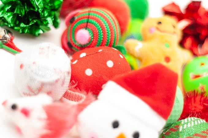 - 20 in 1 various Cat Christmas Gift Box Bag for indoor cats is contained cat teaser wand, rattle ball, plush ball, bell, and catnip toy, etc. This variety pack toys fit all cat's needs, enjoy a happy Christmas with your cat.