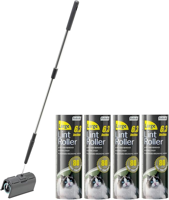 - MULTI-FUNCTION & MULTI-OCCASION USE: Fedicelly big lint rollers for clothes has a portable size and a lightweight body, The jumbo lint roller for clothes is not only perfect for your cleaning routine at home but also for when you’re on the go. You can easily put this cat lint remover in your bag ,car,office and use it anytime. Cat hair remover furniture is extremely easy and effective for all surfaces,clothes,carpet,furniture,sofa,bed sheets,curtains,hardwood floors,etc.