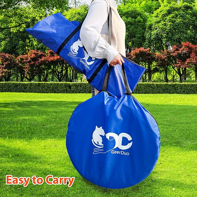 - Easy to carry: Dog Agility training equipment have two carry bags, all accessories can be bumped into the carry bag including tunnel. Enjoy the happy time with your dog by GeerDuo dog agility training equipment.
