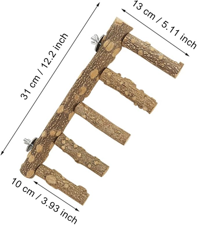 - Perfect Size: The length of natural wooden bird ladder is 12.2 inch, and the length of twigs is 4 inch. Suitable for most small and medium-sized birds, such as canaries, Cockatiels, budgerigars, Conure, lovebirds, parakeets African grey and hamster.