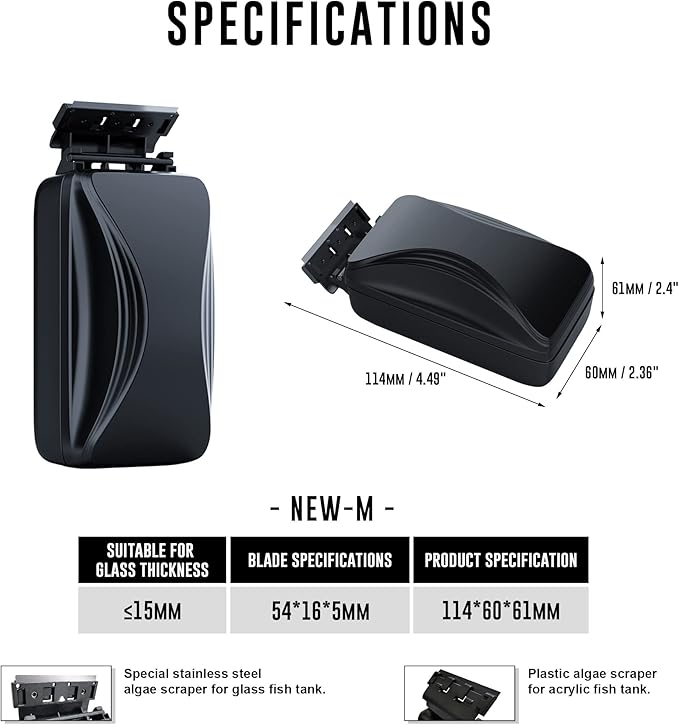 - 【FLOATING DESIGN】This brush is also designed to float in water. So that once you’re done cleaning, you can separate each magnetized part and easily grab your blade/brush from your tank.