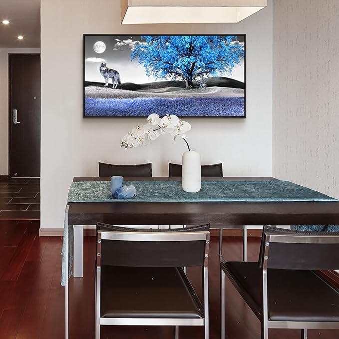 Frame Canvas Wall Art For Living Room Family Wall Decorations For Bedroom Modern Office Wall Decor Paintings Blue Tree Landscape Pictures Artwork Canvas Art Prints Home Decor Black Framed 24" X 48"