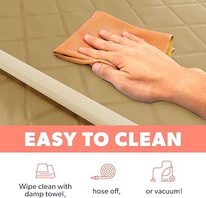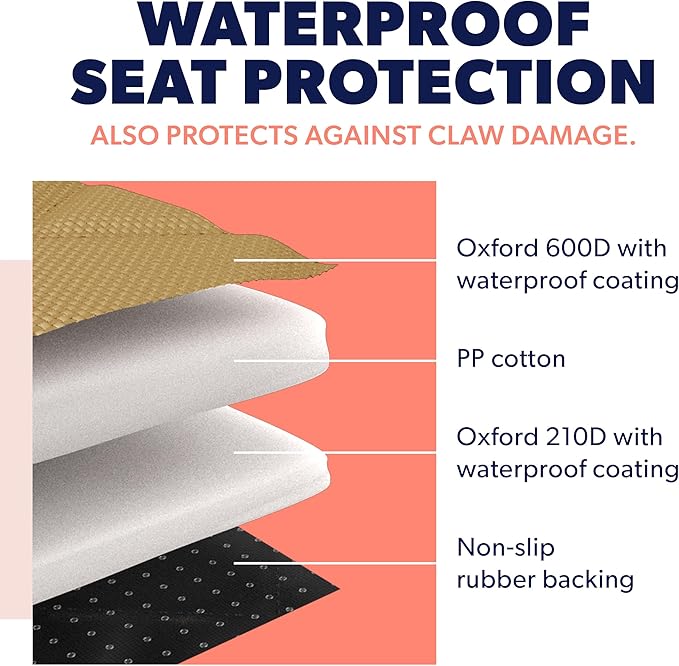 - EASY-TO-CLEAN MATERIALS Γ’ Active Pets dog front seat cover is made exclusively from super easy to clean materials! Crafted with a top layer of premium 600D Oxford waterproof cotton and a middle layer of Oxford 210D with waterproof coating, your seats will remain clean no matter what. In case your pet has dirtied the seat cover, just wipe with a damp cloth or vacuum it and it will be new again in a minute!