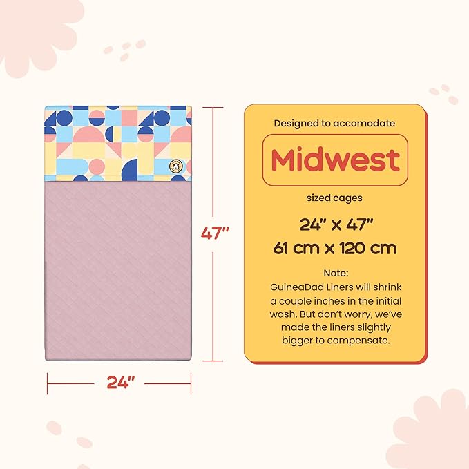 GuineaDad Premium Liner – Fleece Guinea Pig Cage Liner – Ultra-Plush Reusable Fleece Bedding with Waterproof Bottom – (Cotton Candy)
