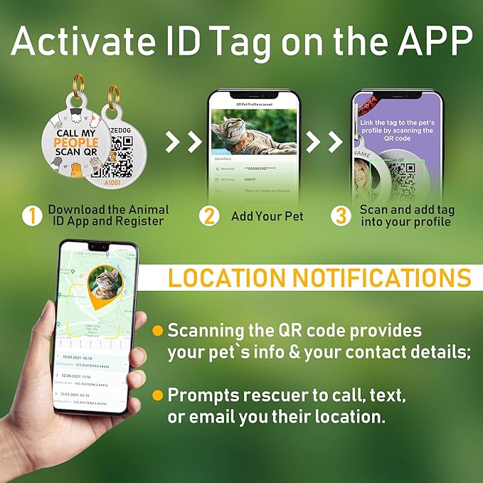 - Small size may fit perfect for kittens and mini dogs. We added a small gift to our collars -QR Id cat tag. To activate the dog tag download App and register your pet there. Scan QR code to add ID tag to your profile. Keep all information in one place with QR pet tag. Anyone who finds your pet can access your pet`s profile and contact you to return it home. You can use the ID tag holder made of eco-friendly flexible and soft liquid silicone to safeguard the pet tag.