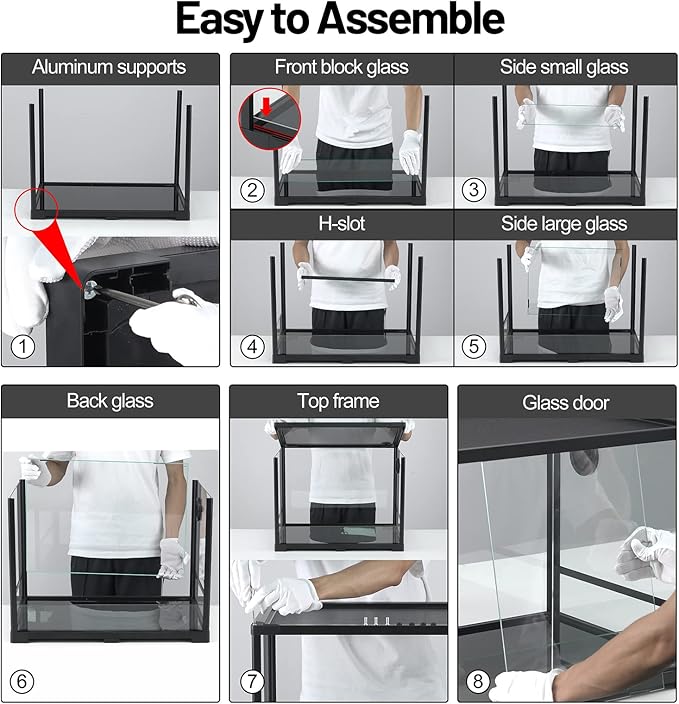 - Easy to Assemble and Clean: This reptile glass terrarium can be easy to install or disassemble with instructions, and the necessary tools for installation are included in the package, so there is no need to worry about moving or cleaning the reptile tank.