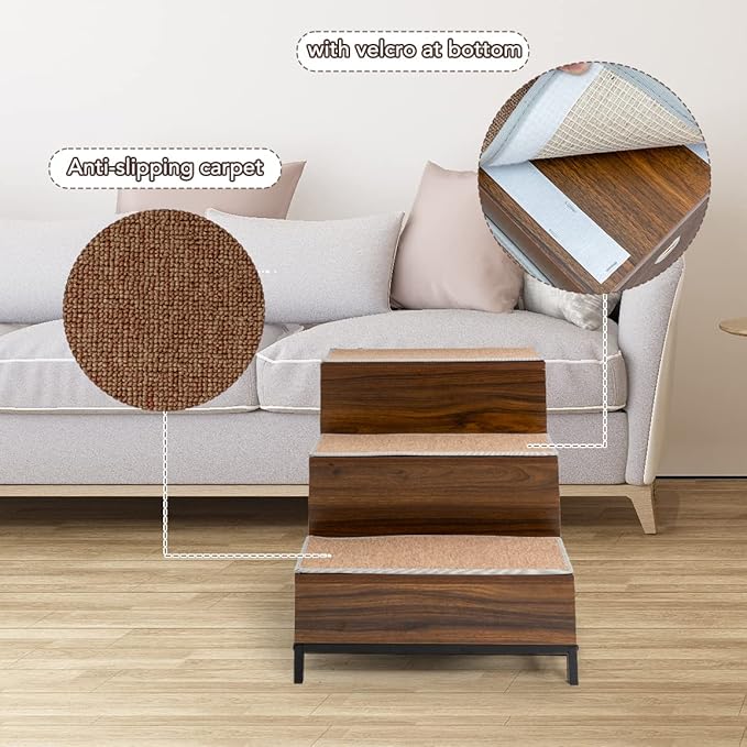 - Versatile Dog Steps -- The dog steps can be used alone as a dog ramp for bed, couch or sofa, providing injured or short leg pets with comfortable climb and reach. The pet window perch allows your dog to climb and perch to look out of the window safely and easily. It enriches your pet's environment and helps decrease anxiety, boredom, or negative emotion. It also can be a dog ladder by cars while going out.