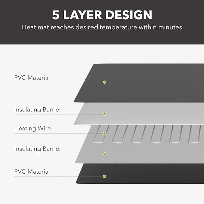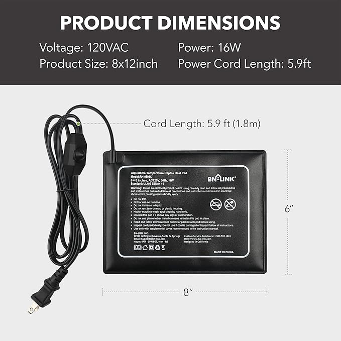 - ENERGY EFFICIENT AND SPACE-SAVING: The BN-LINK reptile heat mat is both compact and packs a punch. The heating wire and insulation allows the mat to reach the desired temperatures within minutes yet only uses 8 Watts to help you save on electricity costs.