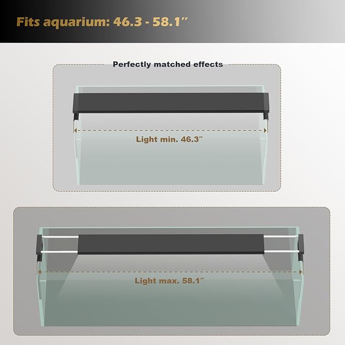 GLOWRIUM Smart Aquarium Light, Bluetooth + WiFi Dual Control Freshwater Fish Tank Light with App, Multi-preset Spectrum, Brightness Adjustable, Anti-Drop, Real Time Water Temperature Sensor (48-60 in)