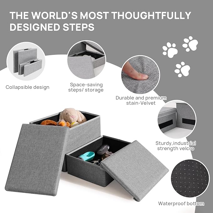 - Practical Storage Function: The couch's dog steps are large-capacity storage space. The top cover can be easily opened for easy storage of pet supplies, portable and easy to use, saving space.