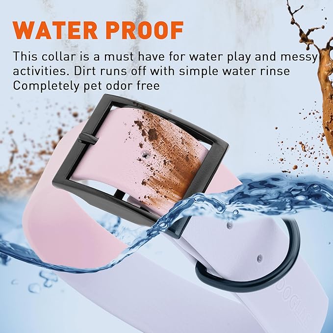 • Free Your Dog to romp in puddles and retrieve from lakes with the Dogline Biothane Waterproof Dog Collar. This water-repellent collar stays dry and odor-free, without shrinking or losing flexibility.