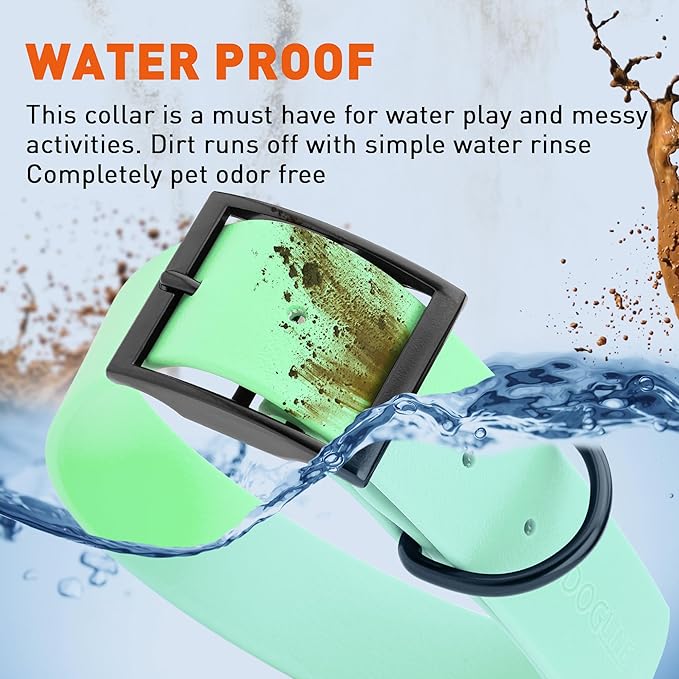 • Free Your Dog to romp in puddles and retrieve from lakes with the Dogline Biothane Waterproof Dog Collar. This water-repellent collar stays dry and odor-free, without shrinking or losing flexibility.