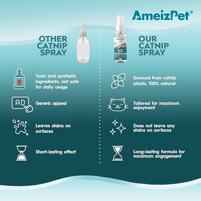 - BOOST YOUR CATโS EXCITEMENT. Unleash the captivating power of the catnip spray. Specially formulated with the finest catnip essential oils, a quick spritz is all it takes to spark a blast of excitement in your little furry companion. Watch as they engage in playful activities, captivated by the irresistible charm of our cat nips spray.